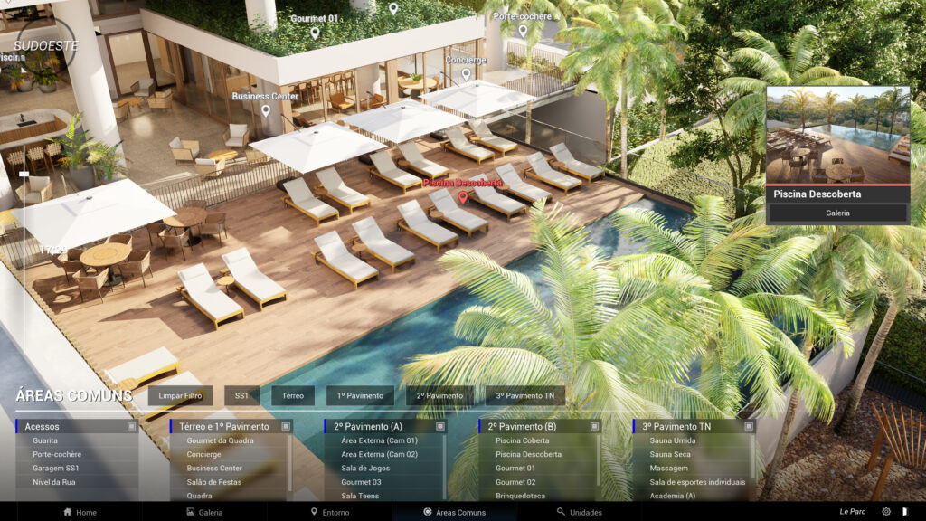 Ofereça aos seus clientes a experiência de explorar cada ambiente de forma interativa.