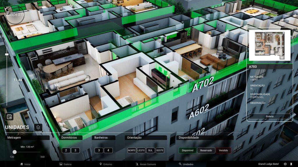 No totem, no tablet ou na tela interativa 3D, os detalhes dão vida ao seu empreendimento.