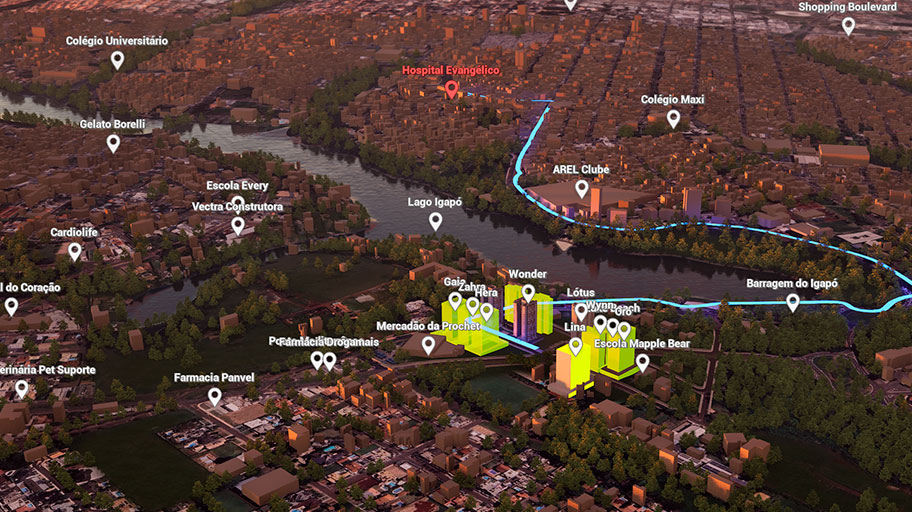 Apresente seus futuros lançamentos, mostre a cidade inteira, delimite áreas de interesses.