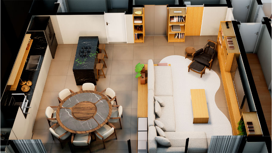 Veja os apartamentos em 3D, em alta qualidade. Reprodução fiel ao seu projeto de interiores.