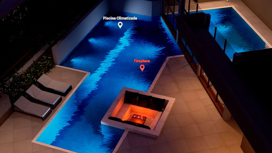 Faça mudança de horário em tempo real, veja o empreendimento em modo noturno com efeitos das luzes acesas. Alterne entre as estações do ano para ver a projeção de sombra em diferentes posições.