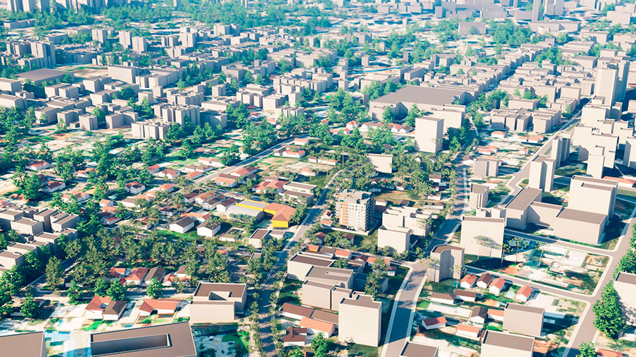 Seus vizinhos precisam aparecer. Nós damos um jeito nisso. Adicionamos efeitos e ambientações do entorno próximo como faixas de sinalização, postes, casas, prédios, indústrias e vegetação.