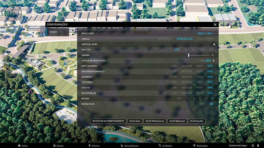 A maquete virtual interativa é desenvolvida para rodar em PC Windows com placa de vídeo, processador e memória de alto desempenho.