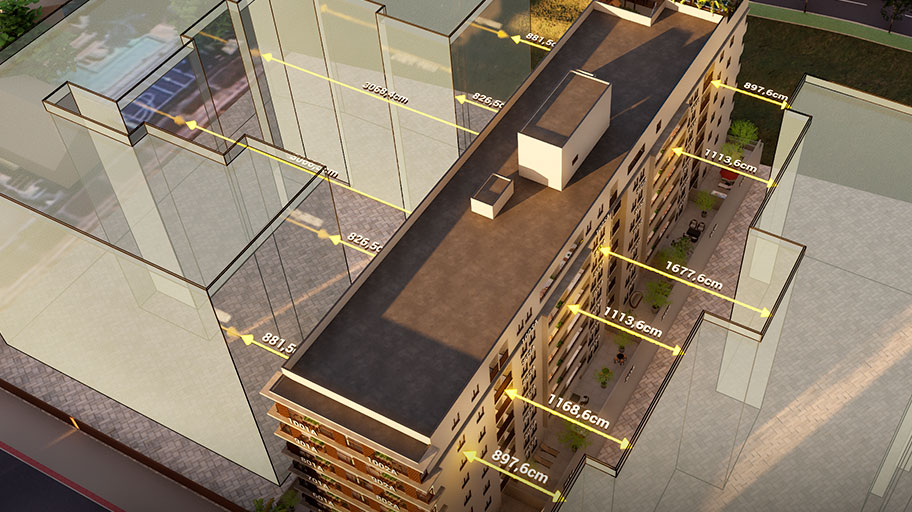 Veja distâncias de lotes, apartamentos e áreas, tudo em tempo real, com o toque de um botão na sua Tela Interativa.